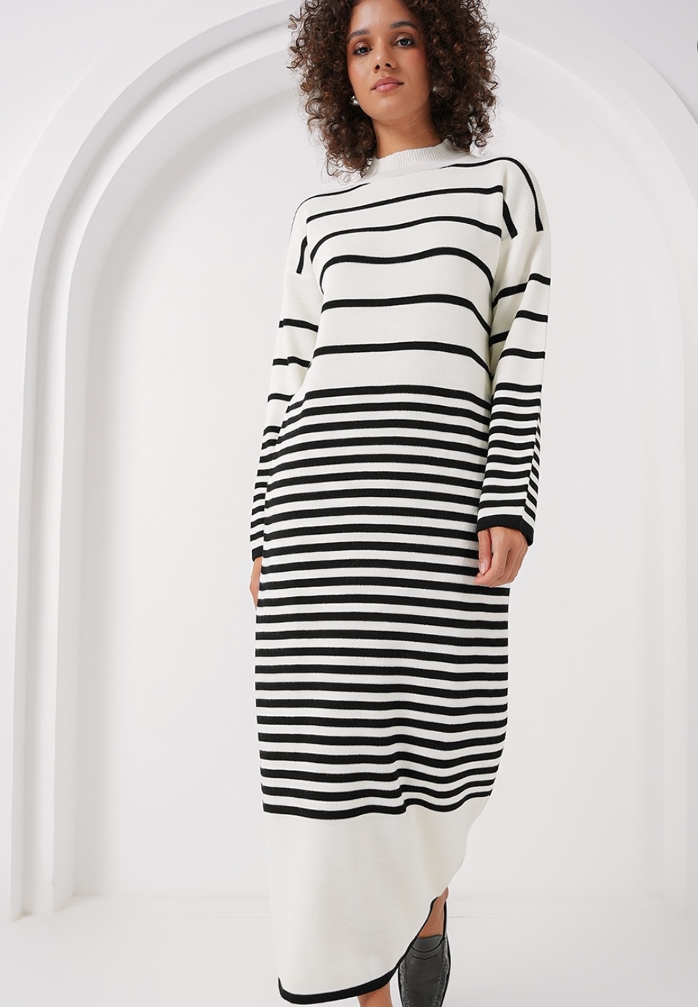 Ürün Içerigi % 100 Akrilik Ürün özellikleri Çizgili Uzun Triko Elbise Model Bilgileri Bedeni : 38 Ürün Boyu: 108 cm Kol Boyu: 52 cm Bedenler Arasinda 2 cm Fark Vardir. Manken Ölçüsü : Boy:176 Gögüs:90 Bel:63 Basen:94 Genel Yikama ve Kullanma Talimatlari El isi ve boncuklu ürünler hassas programda tersten yikanmalidir Baskili ürünler zamanla dökülebilir Yikamada ürünü bozmamak için 30 C’yi asmayiniz Ürünü yikarken yikama talimatina uygun olarak yikayiniz Renkli ürünlerde uygun deterjan kullaniniz Denim olan ürünler ve koyu renkli ürünler açik renkli diger ürünler ile yikanirken boyayabilir. Birlikte yikamayiniz Giysileri kuruturken direkt günes isigina maruz birakmayiniz