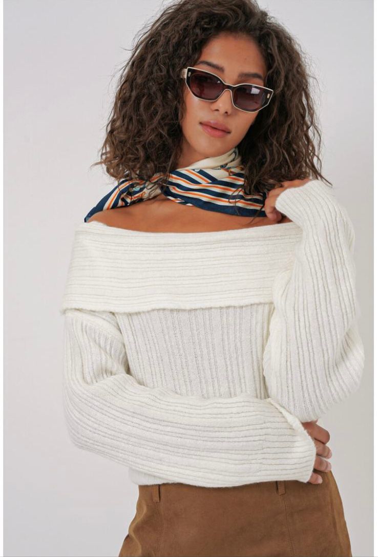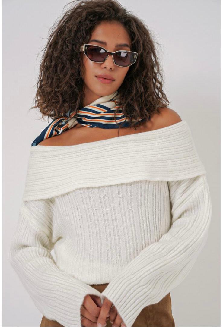 Kadin Açik Omuz Oversize Triko Kazak